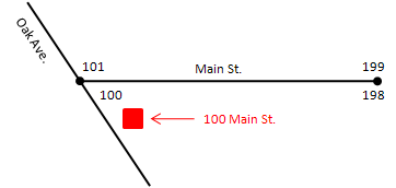 therefore, in line with the end of the street feature. When streets intersect at odd angles, specifying