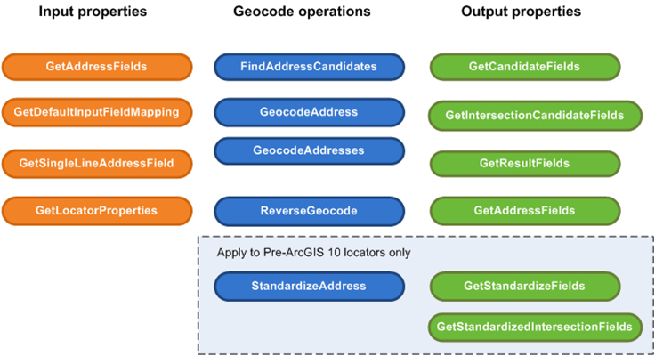 Fields contained in an standardized address returned from the StandardizeAddress method (only supported for pre-ArcGIS 10 locators).