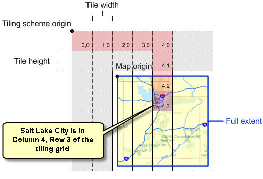 the map below, if you were traveling from the tiling origin to Salt Lake