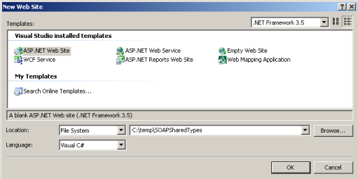 a path to the new Web Site and name the project "SOAPSharedTypes".