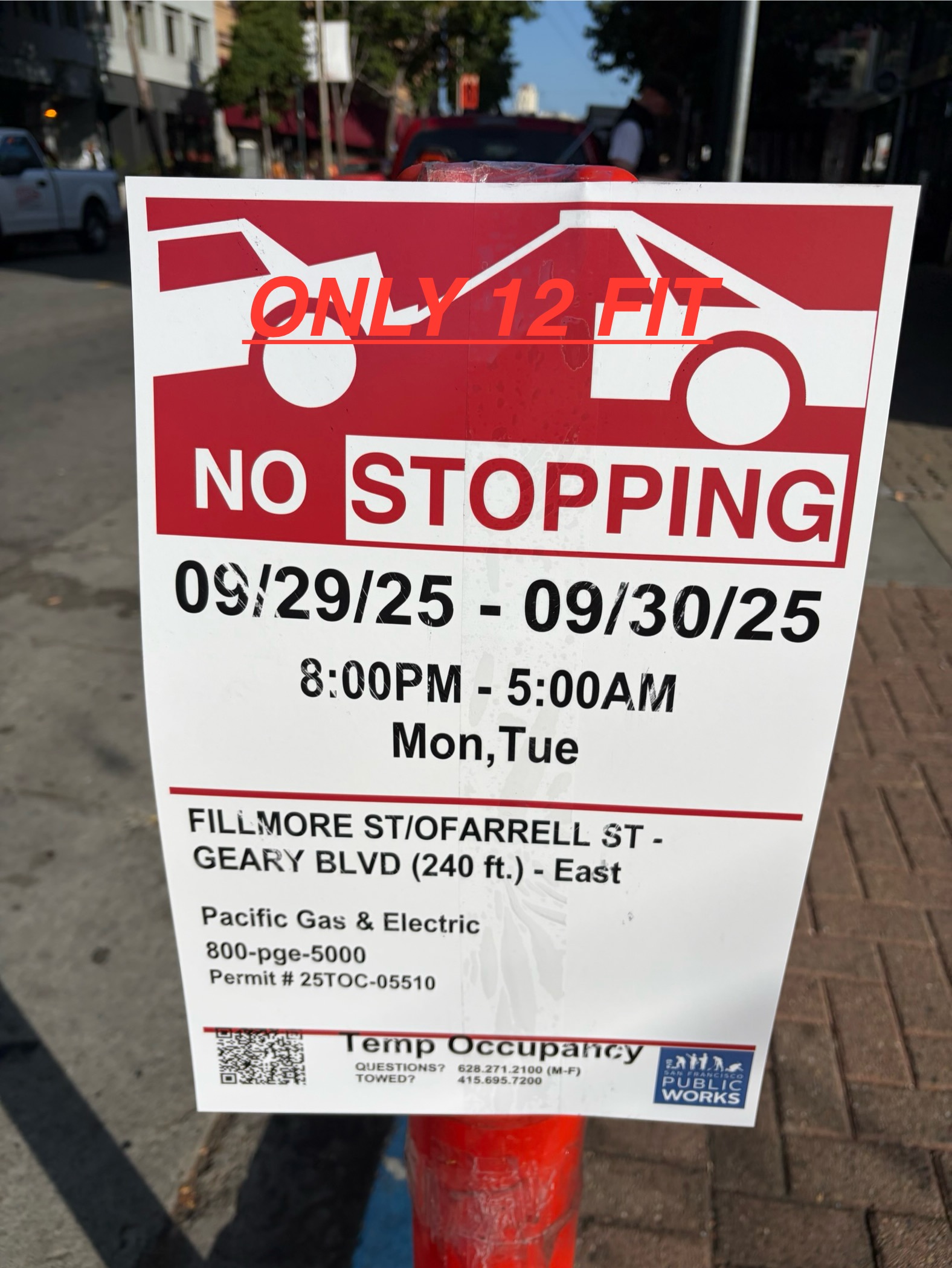 357140NoPhase2408:00PM - 5:00AMMon,Tue09/29/25 - 09/30/25FILLMORE ST: OFARRELL ST to GEARY BLVD (1500 - 1599)